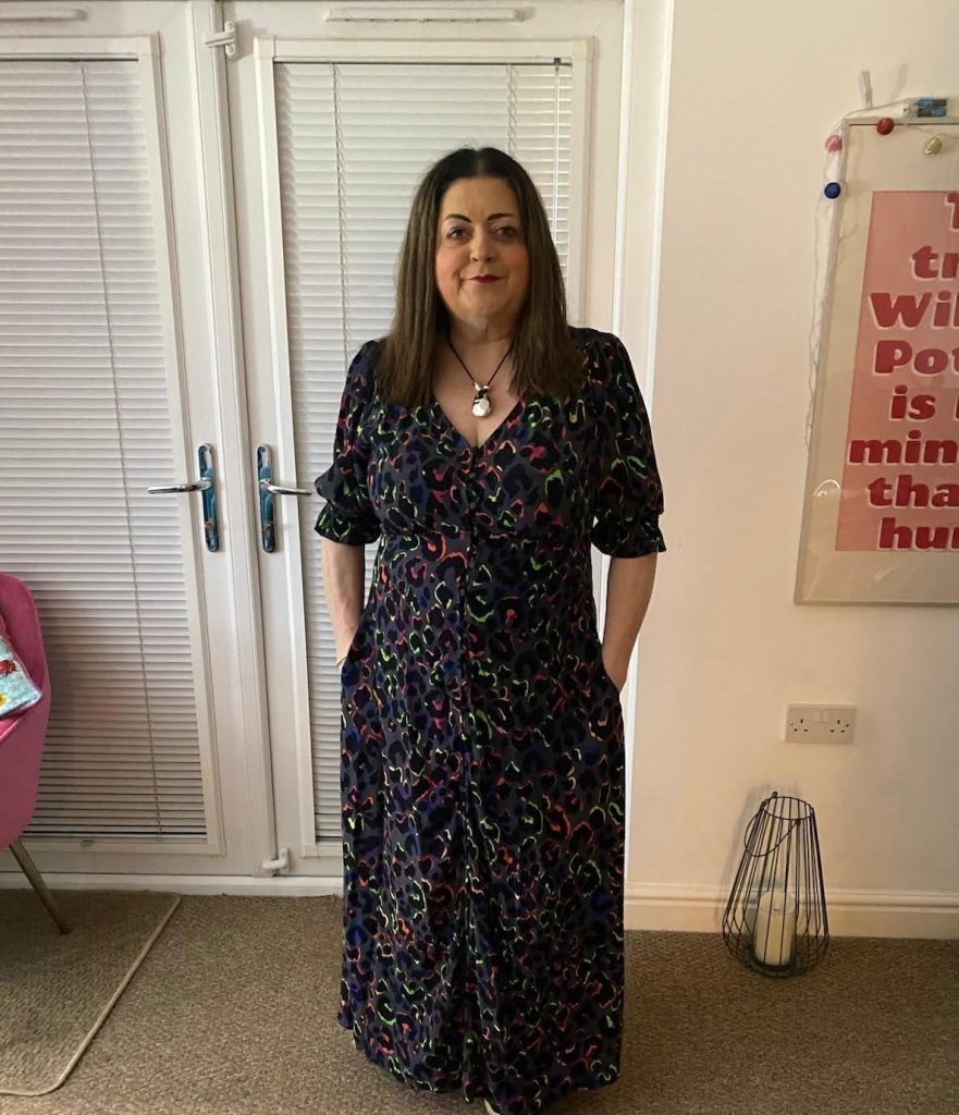If you look at the photo on my bio, you can see the beautiful, colourful scarf I’m wearing. I love it so much and I wear it a lot, probably too much! It’s from a fashion brand called Scamp and Dude, who are known from their colourful leopard print designs with their trademark lightning bolt. @Scamp and Dude hold a special place in my heart. They were the first brand I bought when I had reached a 3 stone weight loss and wanted to celebrate. Quite simply, their clothes are amazing. Beautiful cuts that flatter a woman’s body with colours and designs that stand out and make you feel special. I must confess that I now own 4 dresses and 2 skirts but what is a girl to do when they keep coming up with more gorgeous things all the time!